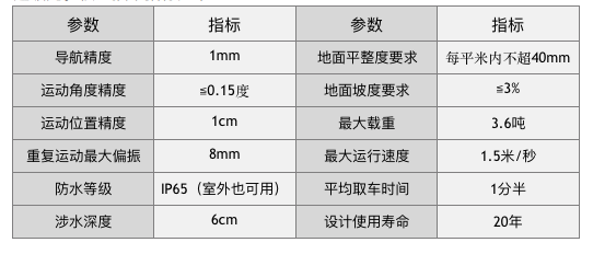 芯球泊车机器人之所以获得市场如此认可,一是因其技术指标在全球都遥遥领先。核心技术指标如下: