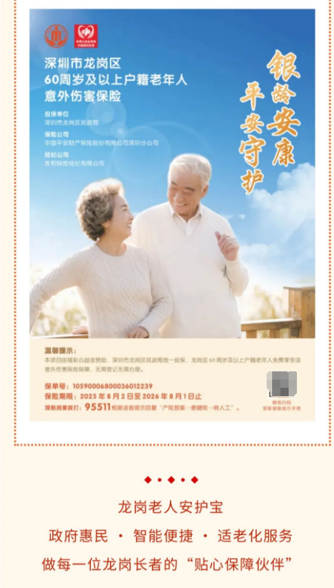 速转!龙岗 60 岁以上户籍老人,这份免费意外险请收好
